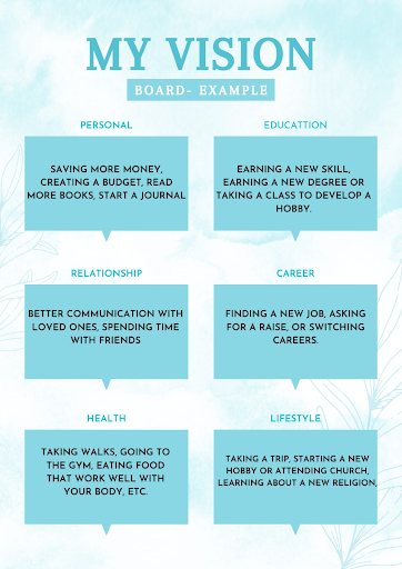 A collection of images or items arranged in a way to support you in realising your objectives or vision are called vision boards. You assemble a board with craft supplies, magazine cuttings, and other random stuff. Your dream board serves as a constant reminder of your values whenever you need to make a decision in life. Consider it to be a nudge in the correct direction. This board may be digital or physical. For long-term objectives, such as completing your 5-year plan, you can use a vision board. Or you may also make an annual vision board. The possibilities for a vision board are virtually endless.